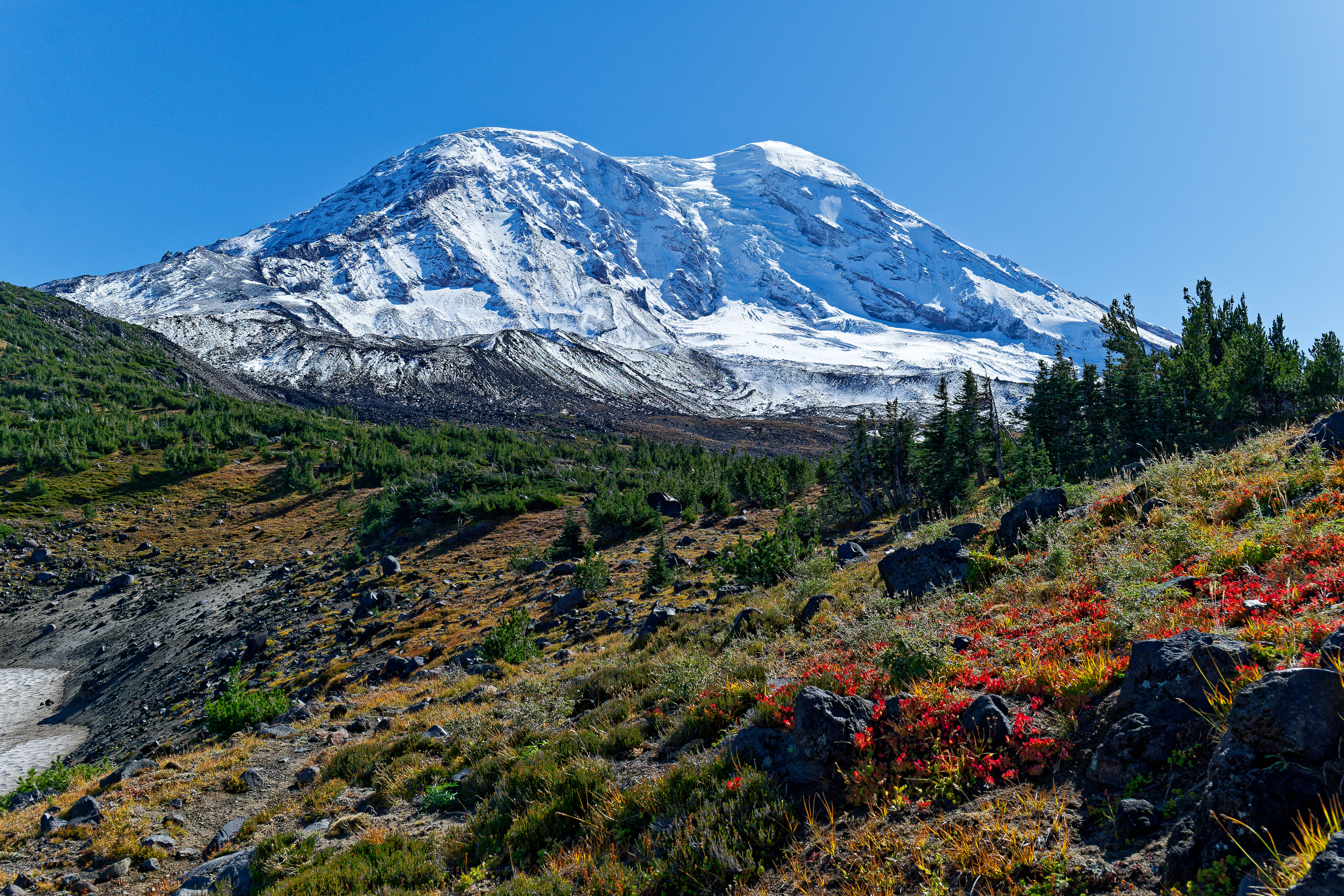 I attempted to get to Paradise around peak autumn color again this year, hoping to capture it with color similar to my fall 2024 trip which was perfectully timed, but capture some new perspectives. I planned this trip a few months in advance and an early morning fall storm rolled in which impacted my plans and made me adjust at the last minute.