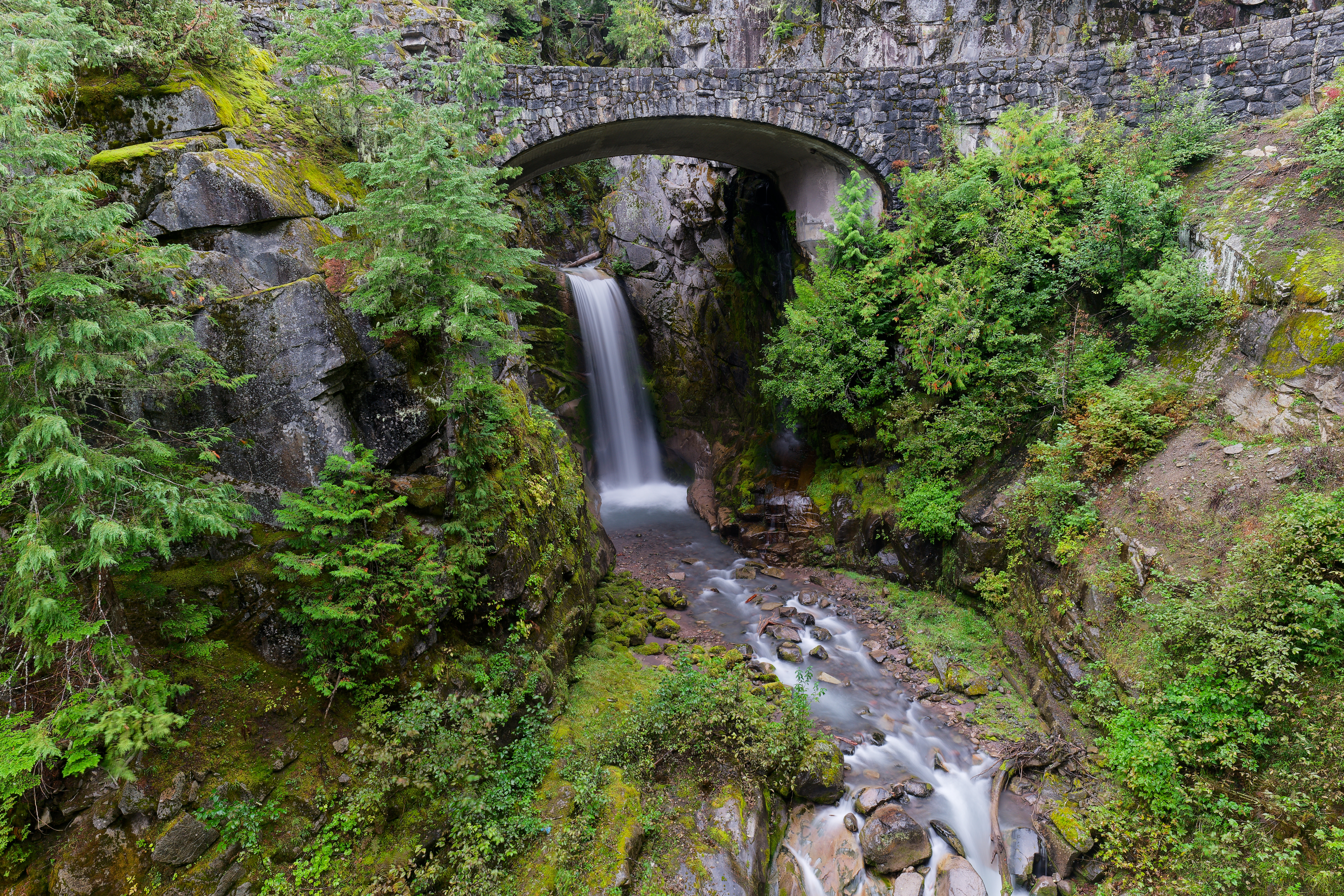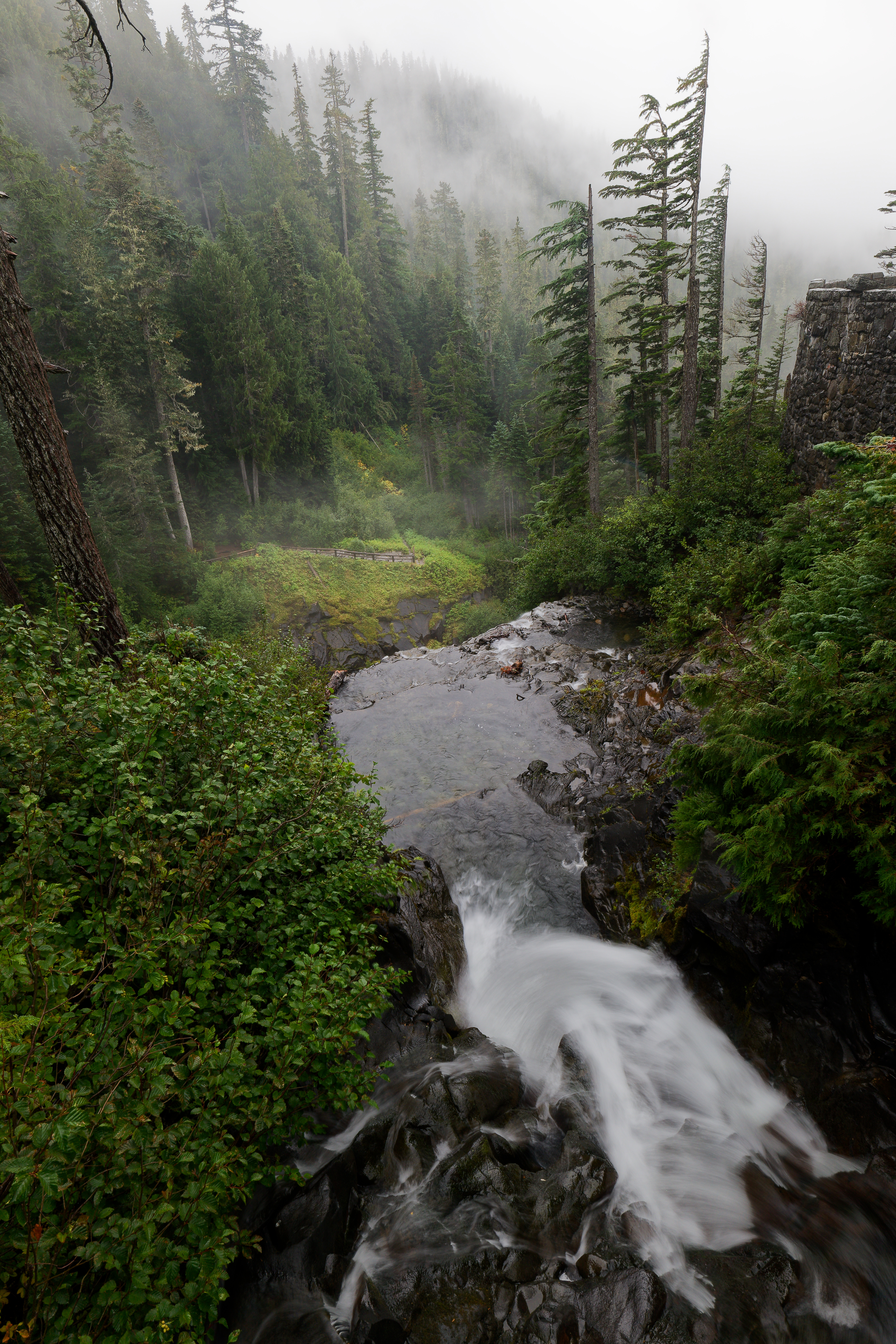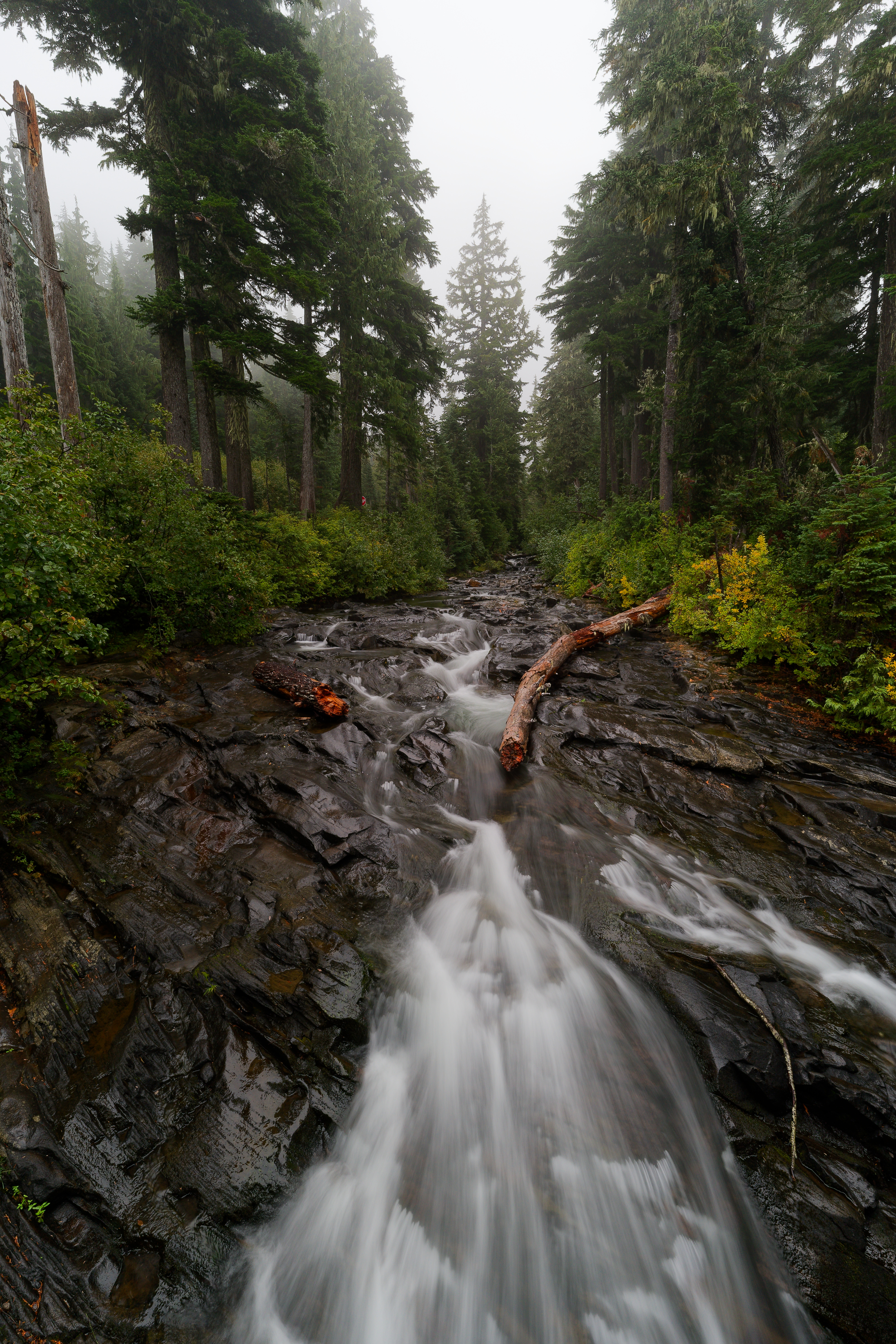 Above: View from above Myrtle Falls, Rainier is top of the frame if you imagine hard enough. Above: Fall color at Paradise. Above: Dense fog at Paradise. Above: Paradise River. Above: Above Narada Falls. Above: Narada Falls . Above: Christine Falls Above: Martha Falls Above: Washington Cascades on the Paradise River Above: The bottom tier of Ruby Falls. Above: Fall color above Louise Lake . Above: Fall color above Unicorn Creek .