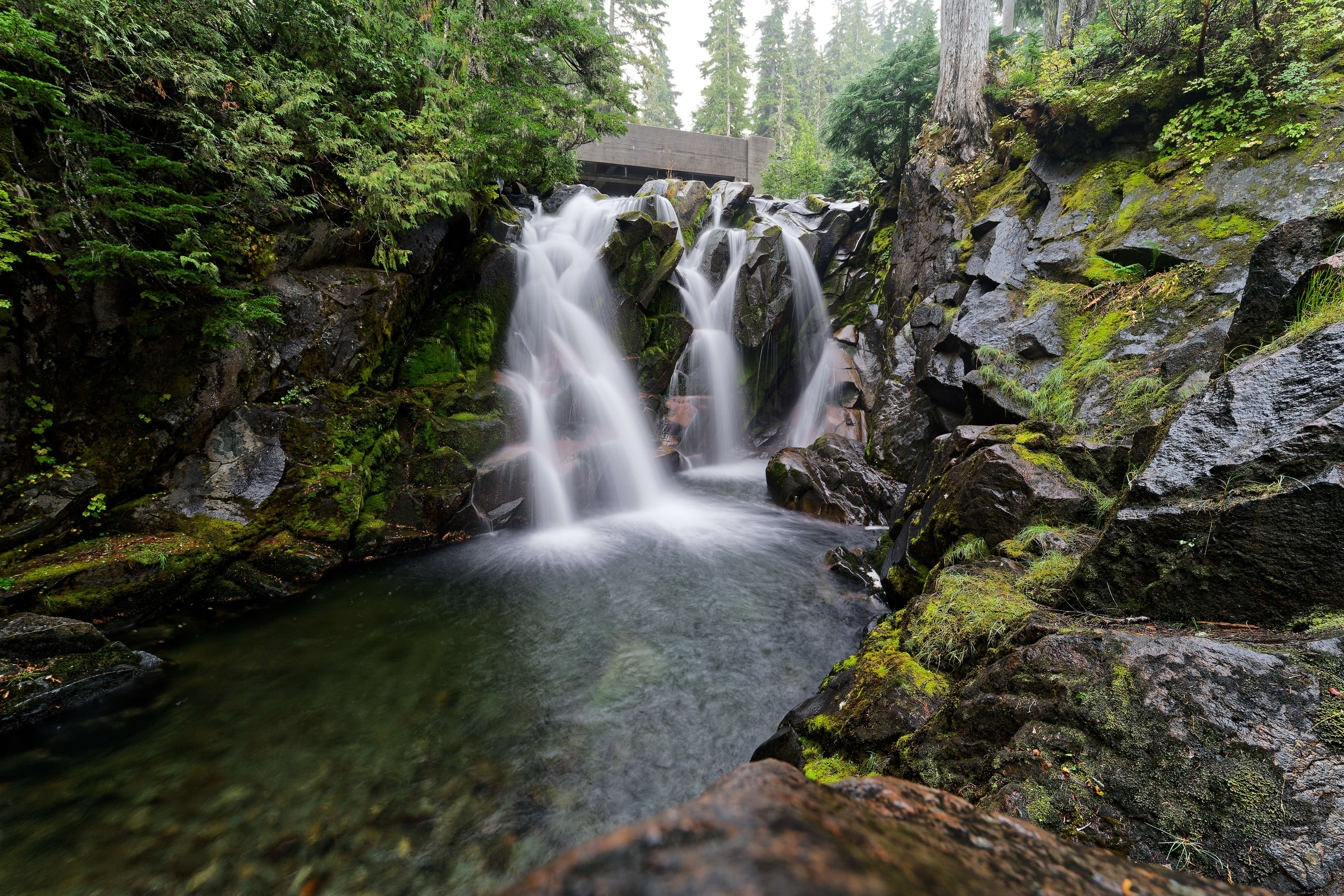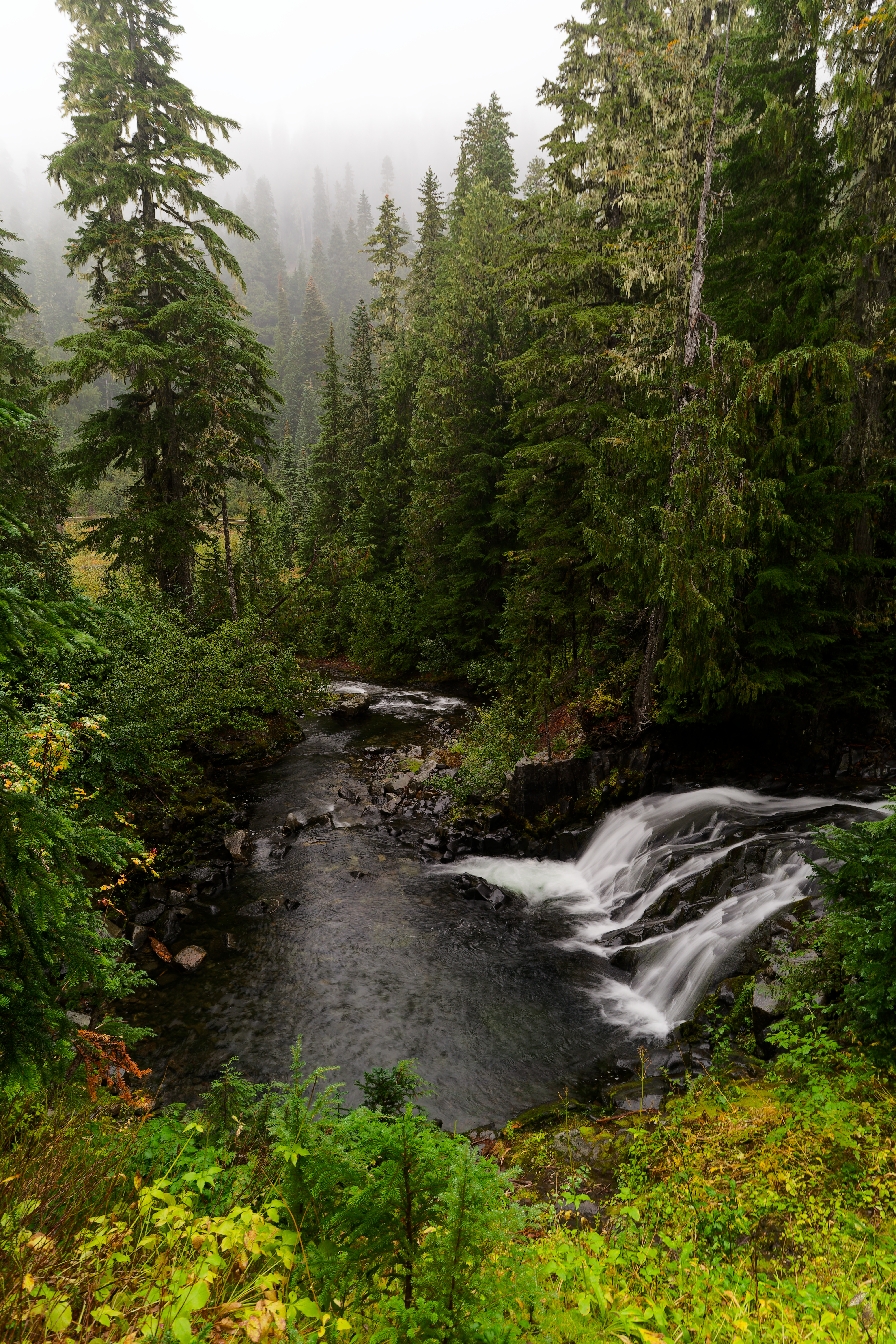 The forecast had called for a clear day Saturday so I decided I would head to Rainier for the night so I could wake up early to hike. I got gas and checked the forecast in Packwood. The NWS point forecast suggested 40% chance of rain tomorrow at various points in the 4-7k feet elevation ranges around Rainier. By the time I arrived at camp site near the park it was starting to sprinkle. It rained off and on all night despite the forecast, and even though I held hope for Saturday to be partly to mostly sunny it ended up raining and being drizzly the entire day. My hopes of a repeat of my 2024 trip were dashed. I decided after spending the early morning at Paradise I would spend the remaindr of the day visiting and hiking waterfalls and lakes.