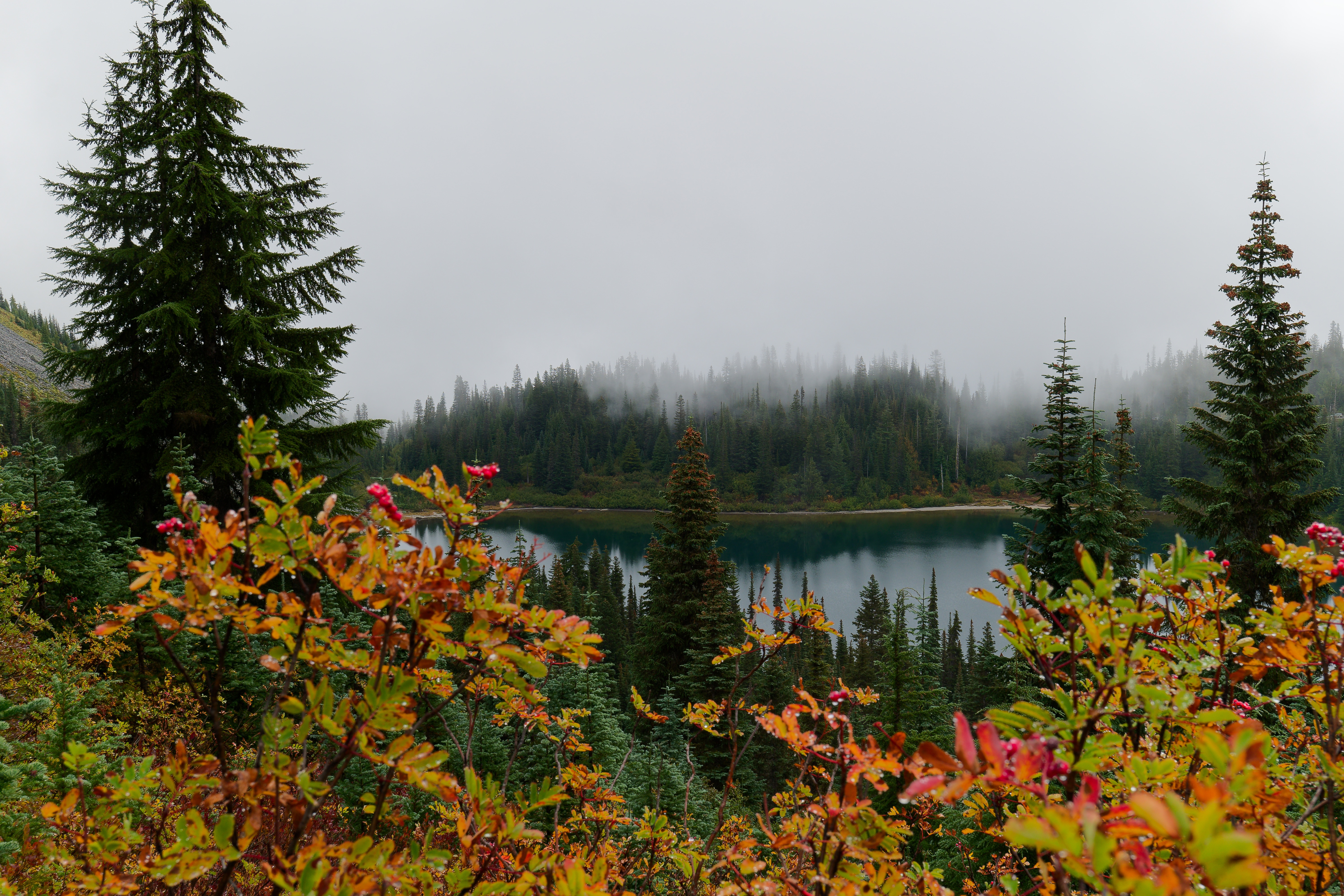 Above: Fog floating across the surface of Takhlakh Lake