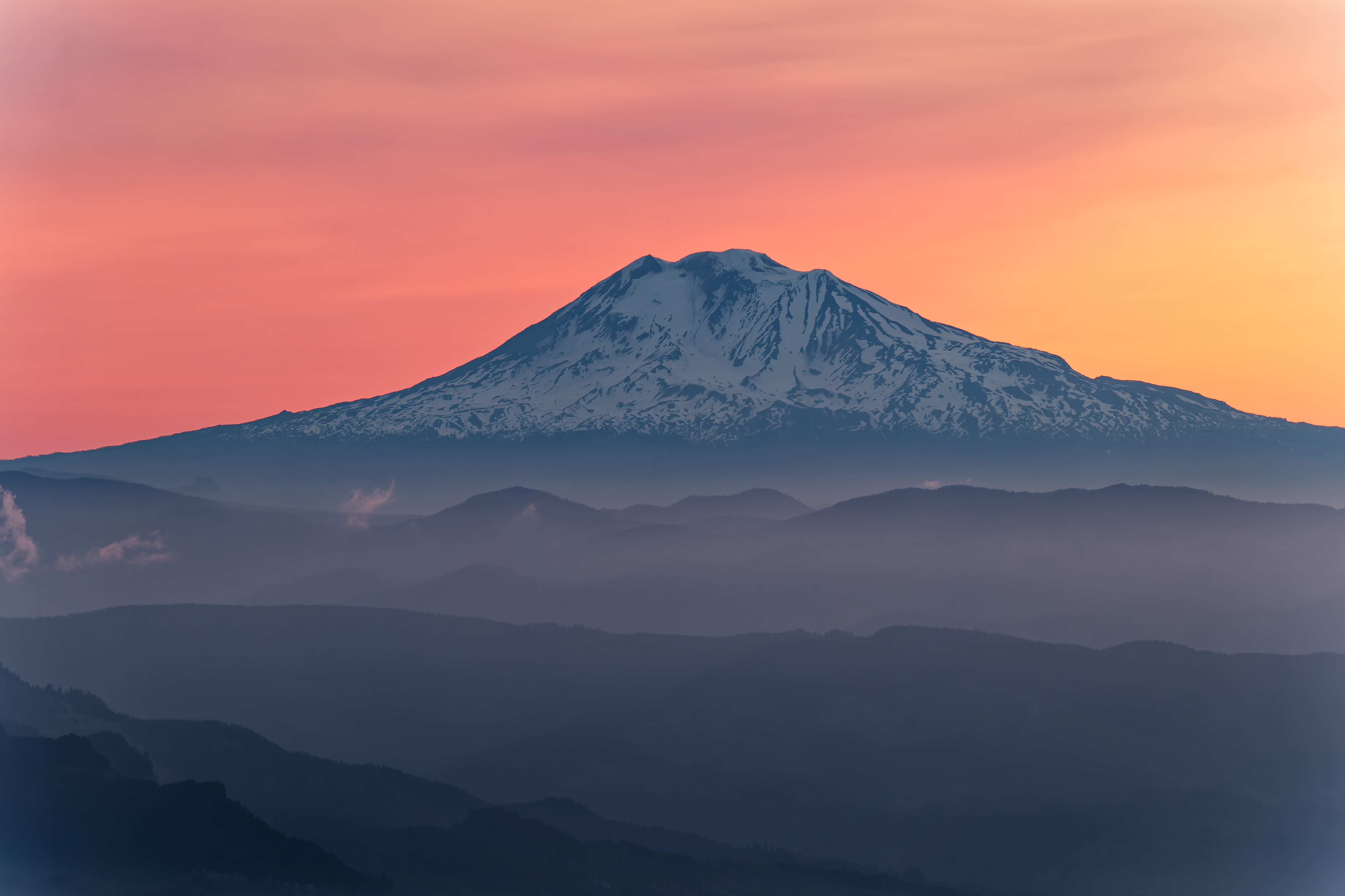 Above: Adams shortly after Sunrise. The Columbia River Gorge can be seen below.