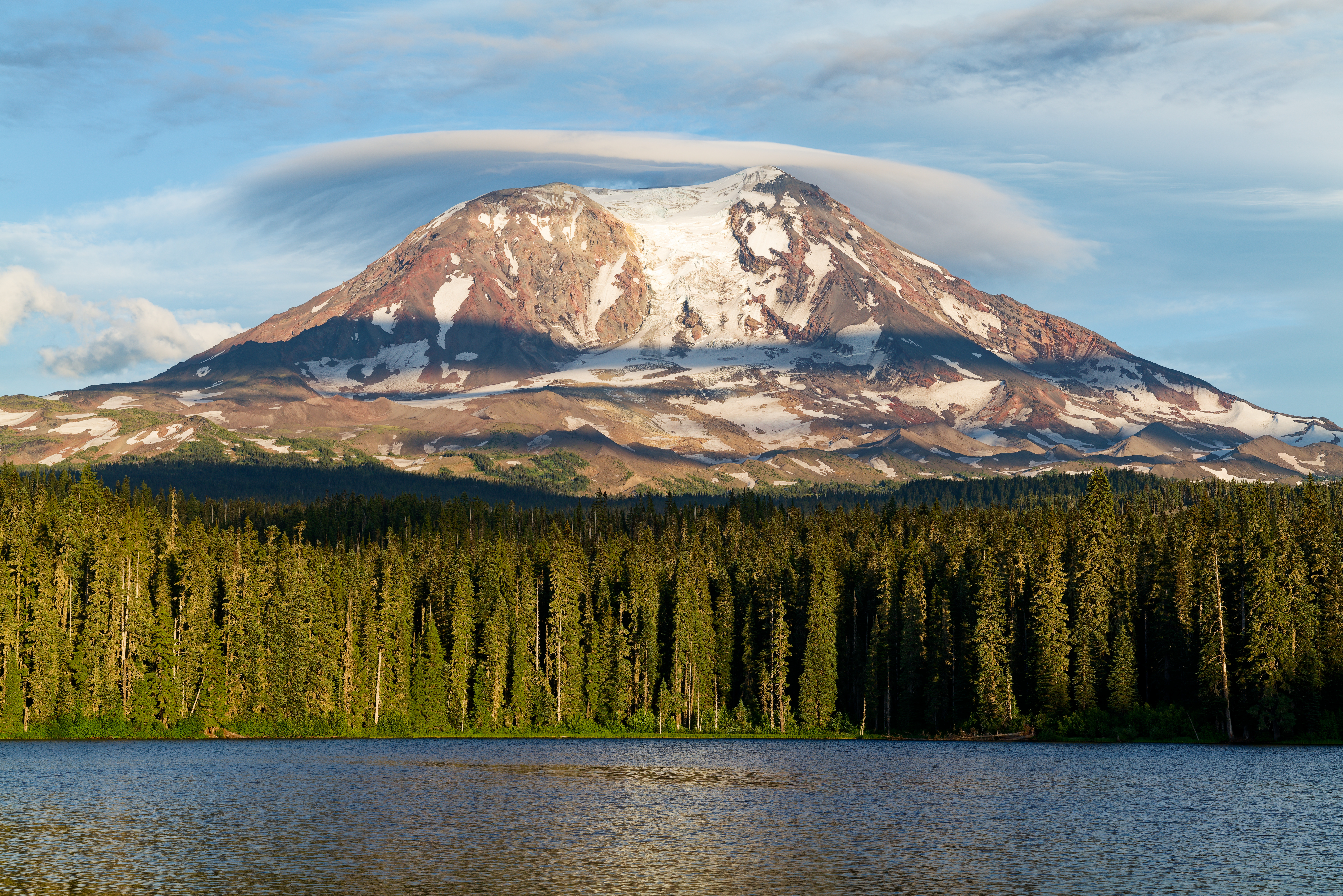 Above: Lenticular Clouds and Adams reflected in Takhlakh Lake.
